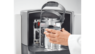 Bei der neuen FRITSCH PULVERISETTE 5 premium line erfolgt die Auswuchtung vollautomatisch – ein weiteres geniales Patent von FRITSCH! Und ebenfalls patentiert ist die neue Mahlbecherverspannung ServoLOCK. Statt wie bisher mit Spindeln oder Schrauben und statt mit mehr oder weniger großem Kraftaufwand die Becher aufzuspannen, heißt es jetzt nur: Bügel herunterklappen – KLICK – fertig! Mit der motorischen Verspannung ServoLOCK wird der Becher reproduzierbar mit einer Anpresskraft von 16 kN [~ 1,6 t] eingespannt. Premium Sicher, premium Schnell und premium Einfach!