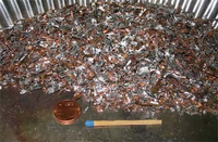 This task is solved with the FRITSCH Universal Cutting Mill PULVERISETTE 19l/50-700 rpm. The punching waste is a hard, abrasive material. Therefore hardmetal tungsten carbide cutting tools are used. Equipped with a 4 mm sieve, a chunky sample is obtained. The in this manner acquired material, can simply be filled into the melting pot and melted down. From the melt, a homogenous sample is easily taken.