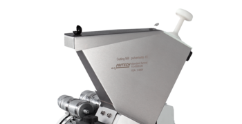 The protected funnel made of stainless steel with plastic sample pusher enables due to the sample pusher a good handling and an outstanding material feeding.