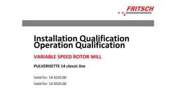 for the independent utilization for the support of instrument qualification in the quality management system for the Variable-Speed Rotor Mill Rotor PULVERISETTE 14 classic line.