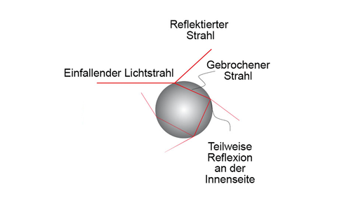 Ein Lichtstrahl, der z. B. auf einen Regentropfen trifft, wird erst in Richtung Tropfenmitte gebrochen und dann beim Austreten am Außenrand des Tropfens immer wieder in den Tropfen hinein reflektiert. Dabei verlässt bei jeder Reflexion ein Teil der Strahlung den Tropfen.