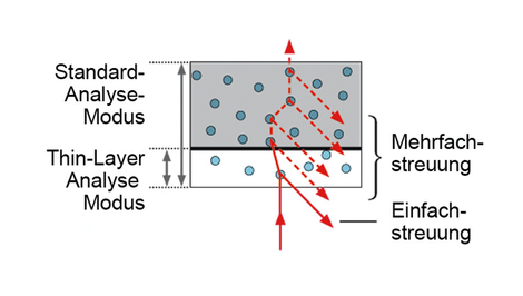 Bei der Laserbeugung führt Mehrfachstreuung zu einer Verfälschung der Winkelverteilung und damit der gemessenen Partikelgrößenverteilung.