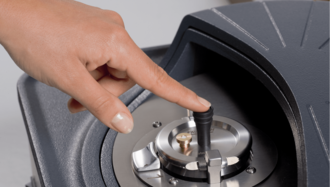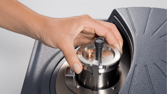 Durch das Versenken der Becher wird auch das Handling vereinfacht und die Prozess-Sicherheit verbessert. Mit nur noch zwei Handgriffen werden die Mahlbecher mit der SelfLOCK-Technik in der Mühle verspannt. Fehlbedienung ausgeschlossen. Ein in den Becherdeckel integrierter RFID-Chip erkennt zudem die verwendeten Mahlbecher automatisch. Die Drehzahl wird optimiert und unzulässige Mahleinstellungen werden verhindert. Natürlich ist auch eine Unwuchtkontrolle integriert, die bei falscher Beladung das Anfahren der Mühle unterbindet.