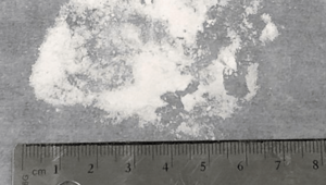 Bild rechts: CBD-Isolat, das mit der Universal-Schneidmühle PULVERISETTE 19 bis in den unteren bis mittleren Mikron Bereich homogenisiert wurde.