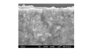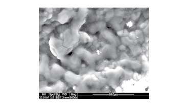 Unsere Möglichkeit Pulver mit Partikelgrößen von <50 nm mikrofein zu vermahlen, hat diese Forschungsbemühungen verbessert. Es erlaubt uns, den Effekt von deutlich verstärkten Korngrenzen Oberflächen und die Wirkungen der verschiedenen Materialien und dotierten Modifizierern bei diesen sehr kleinen Partikelgrößen zu untersuchen. Abbildung 4 zeigt die Mikrostruktur eines gesinterten, dotierten ZnO thermoelektrischen Gerätes.
