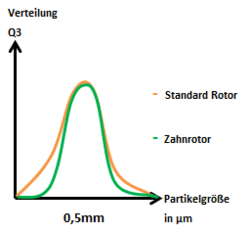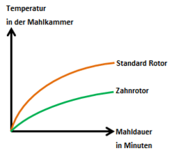 Der neue Rotor mit gekerbten Schneiden verschließt nie die Mahlkammer komplett, und erlaubt somit eine optimale Luftführung. Dies erhöht deutlich den Austrag und macht den Einsatz von sehr feinen Sieben für größere Mengen überhaupt erst möglich. Entscheidend ist dieser Effekt vor allem für Proben mit Restfeuchte (Lebensmittel, Futtermittel oder Pflanzen) und Proben mit einem niedrigem Schmelzpunkt (Kunststoffe).