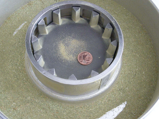 Der nächste Versuch wurde deshalb mit der Schlagleiste und einem 1 mm Sieb durchgeführt. Damit wurde optisch ein recht gutes Ergebnis erzeugt. Es bestand nun die Hoffnung, in einem zweiten Schritt durch Verwendung eines feineren Siebes die gewünschte Endfeinheit zu erreichen.