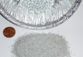 Die Herstellung höherwertiger Produkte aus diesem Recyclingmaterial erfordert eine breite analytische Bewertung. Hierzu muss eine Zerkleinerung sowohl der Flecks als auch des Granulats erfolgen.