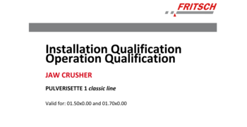 IQ/OQ Dokumentation (als Vordruck - Durchführung nicht im Preis enthalten) zur selbständigen Durchführung zur Unterstützung der Gerätequalifizierung im Qualitätsmanagement-System für die Backenbrecher PULVERISETTE 1 classic line, Modell I und II.