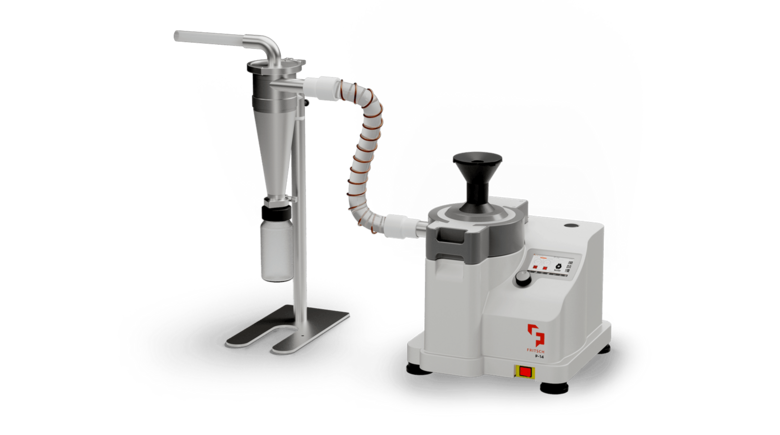 Egal, ob Sie das Gerät als Rotormühle oder zum Schneiden nutzen: erst die Kombination mit einem FRITSCH Zyklon und Absaugvorrichtung zur Probenabsaugung bringt das optimale Ergebnis.