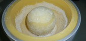 | Bilder: | Gemahlene Probe im Zirkonoxid Mörser (mit 50 mm Ø Mahlkugel) nach einer Mahldauer von 10 Minuten bei Amplitude 2,0 mm. |