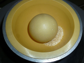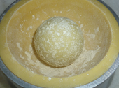 | Nach einer Mahldauer von 10 Minuten klebt das gemahlene Material bereits leicht an der Mahlkugel und im Mörser. |