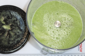 Nach insgesamt 60 Sekunden Mahldauer war die Gurke zu einer recht homogenen, dünnflüssigen und grünen Masse zerkleinert worden. Wir rechnen nicht damit, dass die Feinheit im weiteren Verlauf noch gesteigert werden könnte.