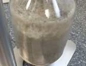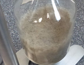 | Auffangglas des Zyklons mit zerkleinertem Probematerial. |