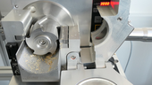 | Bilder: | Geöffnete Mahlkammer nach 4 Minuten. Feiner Staub haftete in der Mahlkammer; lose Rückstände auf der verwendeten Siebkassette konnten schnell abgesaugt werden. Andere Rückstände könnten mit einem härteren Pinsel mobilisiert werden. |