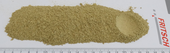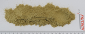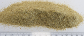 | Austrag, welcher die 0,25 mm Trapezloch-perforierte Siebkassette passieren konnte. Ein Löffelspatel wurde rechts im Bild in das Haufwerk gedrückt um die Feinheit zu verdeutlichen. |