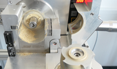 Die Mahlkammer war nur minimal verschmutzt, sicherlich kann noch weit mehr an Probe auf diese Weise zerkleinert werden. Hier kann mit der optionalen Vibrations-Zuteilrinne LABORETTE 24 die Aufgabe von Probematerial automatisiert werden.