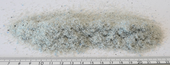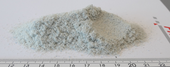| Bilder: | Beispielhafter Austrag, welcher die Siebschalen mit 0,2 mm passieren konnte. Ein Löffel wurde zur Demonstration der Feinheit ins Haufwerk gedrückt (rechts im Bild). |