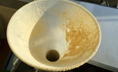 | Bilder: | Einfülltrichter nach der Zerkleinerung – viel Feinstaub drang aus dem Trichter. |