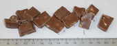 Originalprobe von Milchschokolade mit einem niedrigeren Schmelzpunkt. Die Stücke schmelzen schnell, selbst niedrigere Handtemperaturen reichen zum Schmelzen aus. |