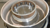 Wir haben der Maschine 20 Gramm der LN2-versprödeten Milchschokolade zur Zerkleinerung mit einem 2,0 mm Trapezloch-Siebring zugeführt. Nach 80 Sekunden war die gesamte Probe aufgegeben. Während der Rotor bei maximaler Drehzahl völlig frei von Rückständen war, war der Rotor nun mit Probenstaub bedeckt. Anstelle von geschmolzenen Partikeln auf dem Siebring war der Siebring im Vergleich zu Ergebnis 2 nun wesentlich sauberer.