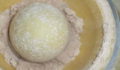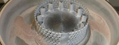 | Bilder: | Probe im Inneren der ZrO2-Mahlgarnitur nach 2 Minuten Zerkleinerung mit flüssigem Stickstoff. |