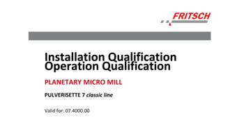 IQ/OQ Dokumentation zur selbständigen Durchführung zur Unterstützung der Gerätequalifizierung im Qualitätsmanagement-System für die Planeten-Mikromühle PULVERISETTE 7 classic line.