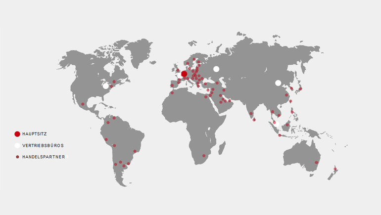 Mit der Zentrale in Idar-Oberstein, vier Vertriebsbüros in den USA, in Russland, Singapur und China, 2 Mitarbeitern in Frankreich, rund 72 Handelspartnern in allen wichtigen Wirtschaftsregionen der Welt sind wir weltweit vertreten. Dennoch ist unser Bestreben unser Vertriebs- und Servicenetz noch weiter auszubauen mit weiteren Vertriebsbüros und Partnern zur anwendungstechnischen Beratung und technischem Service direkt vor Ort, persönlich und unkompliziert.